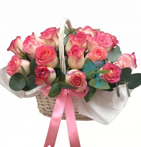 Эта утончённая корзина с розовыми розами создана для тех, кто ценит элегантность и сдержанную красоту. Однотонные розы насыщенного розового оттенка гармонично сочетаются с густой зеленью и оформлены в стильную белую корзину с лентой. Такая композиция станет универсальным подарком для любого торжества, подчеркнет ваше внимание, заботу и хорошие чувства. Прекрасное украшение для дома или особого события.